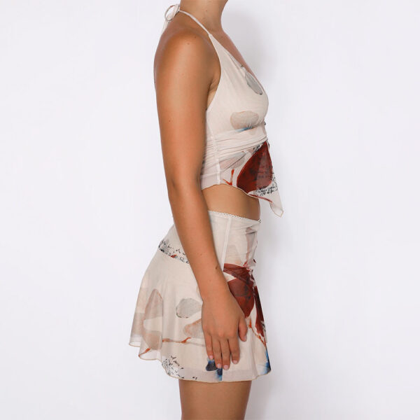 1 review for 2Pcs Printed Suit Summer Sexy V-neck Halter Top And Pleated Short Skirt Women’s Dress Set Clothing
