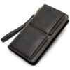 Handmade Cowhide Wallet Men’s Top Layer Leather Zipper Anti-theft Swiping Large Capacity
