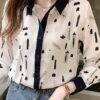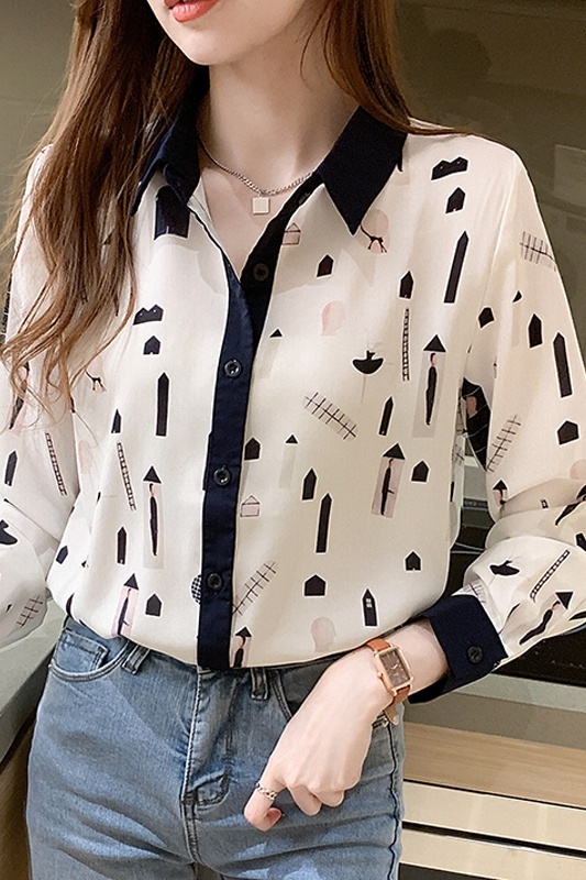 Lantern Sleeve Shirt Women Floral Print Chiffon Shirt