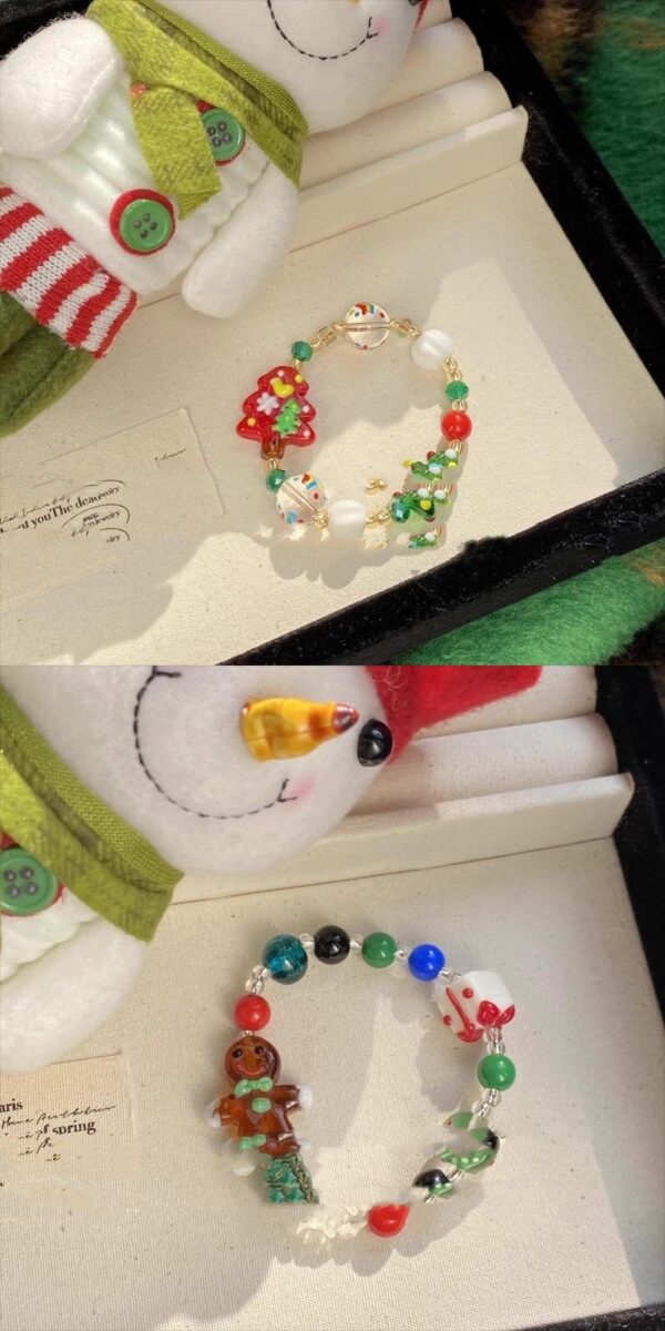 Color: Christmas tree bracelet A, Christmas tree bracelet B, cute gingerbread man bracelet A, cute gingerbread man bracelet B, Christmas hat bracelet