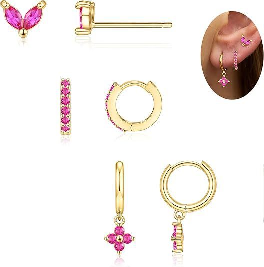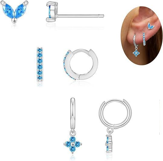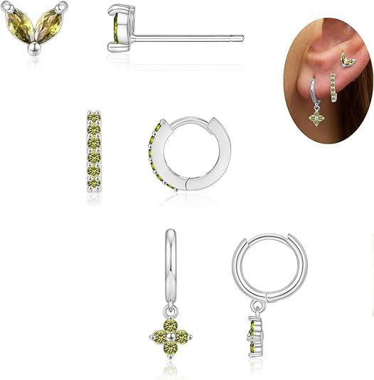 Colorful Zircon Birthstones Earrings 3 Pieces Suit