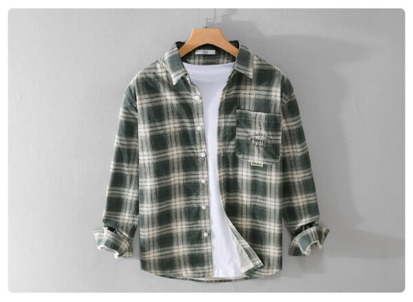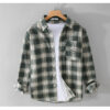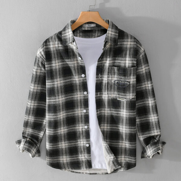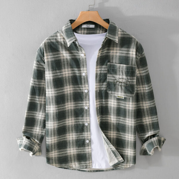 Cotton Plaid Long-sleeved Shirt Retro Cotton Brushed Casual Overshirt