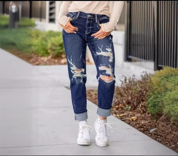 Women’s Fashion High Waist Ripped Straight Denim Trousers