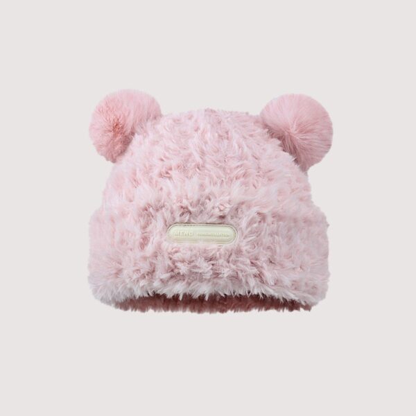 Color: Black-plush bear hat, white-plush bear hat, khaki-plush bear hat, pink-plush bear hat, gray-plush bear hat