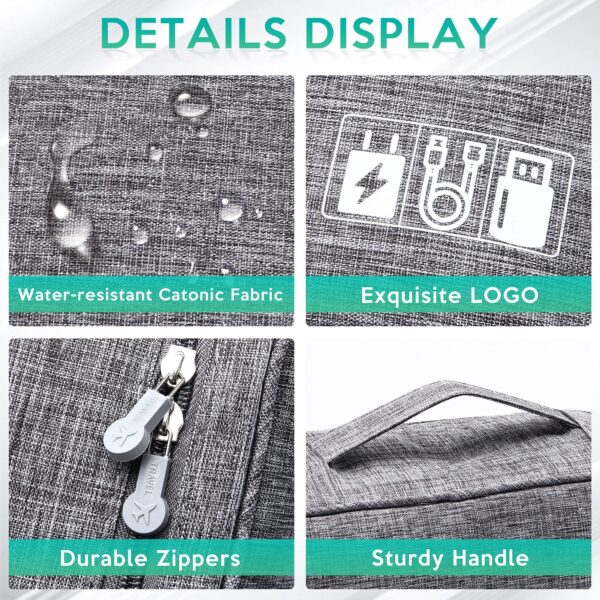 【PREMIUM QUALITY】 – – This travel cable organizer is made of waterproof cation 300D fabric and thick padded inner material. Newly improved double zippers with plane design are more smooth and durable. Superior & neat stitching makes the electronic organizer case exquisite and unique.