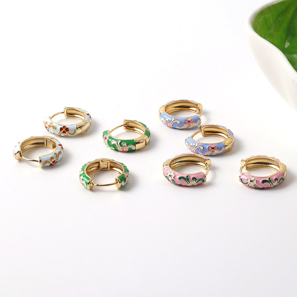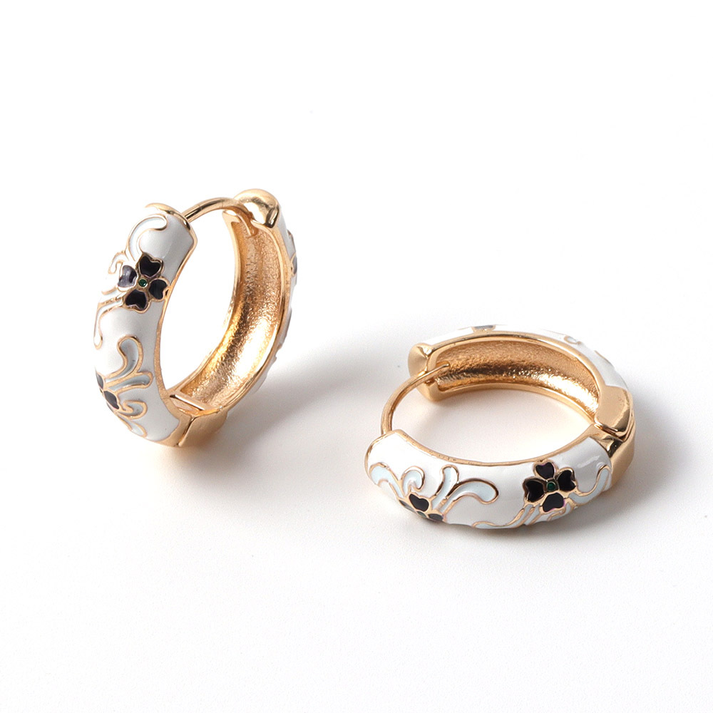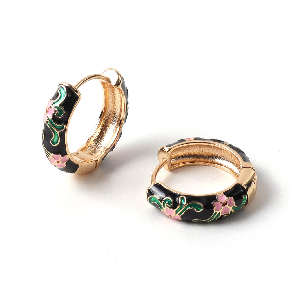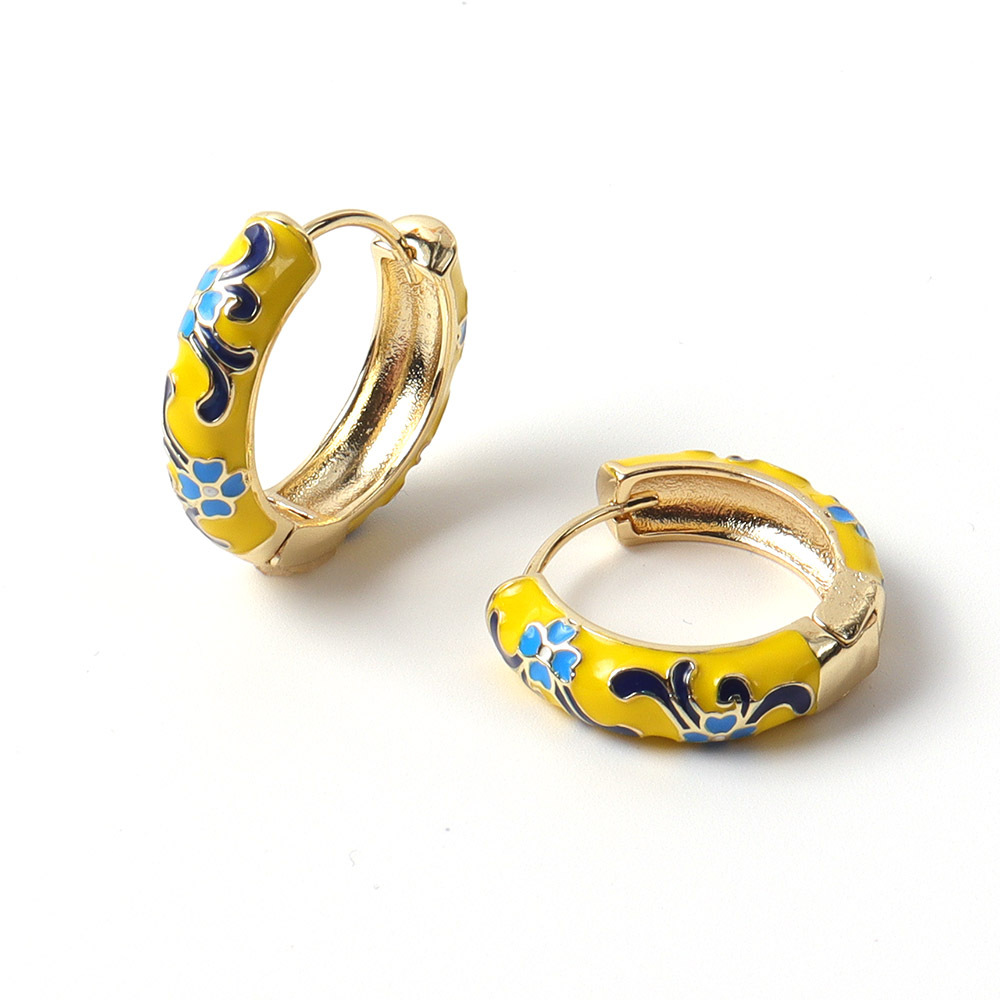 Enamel Earrings Burnt Blue Flower Women’s Earrings