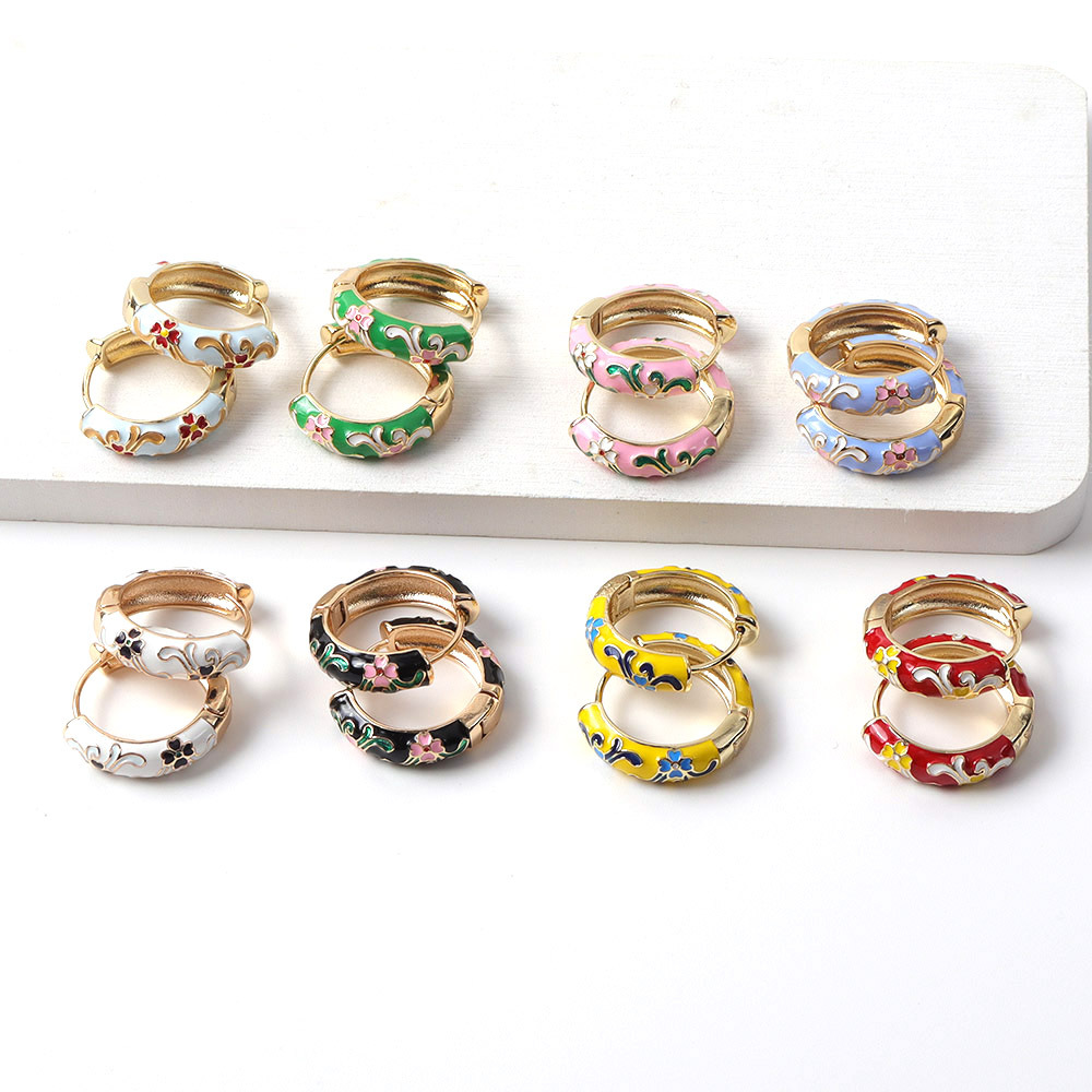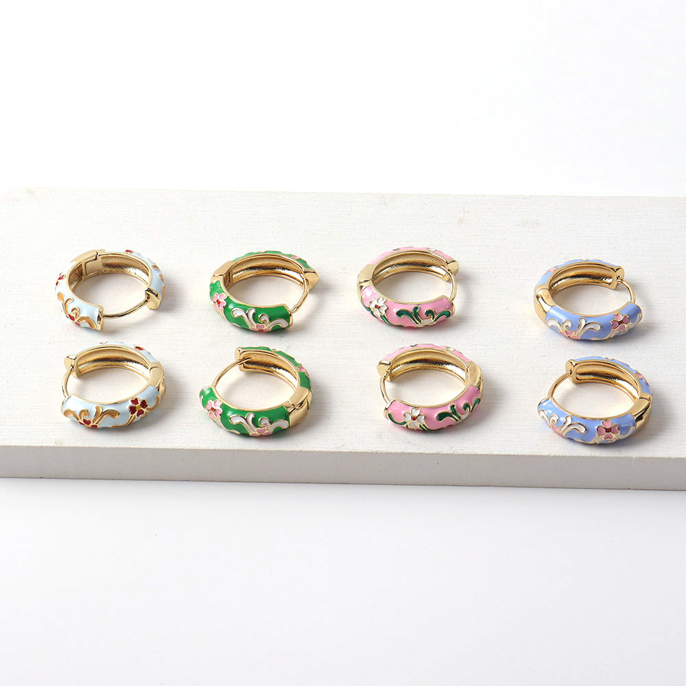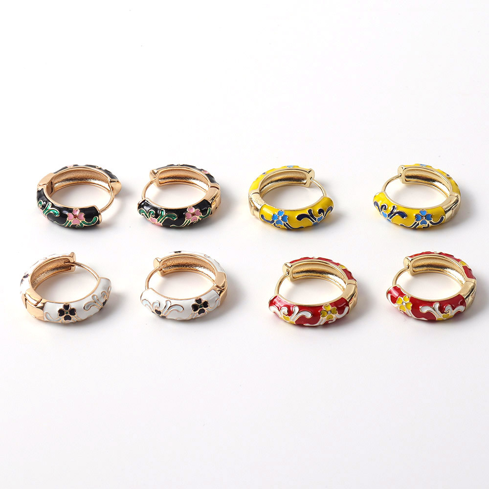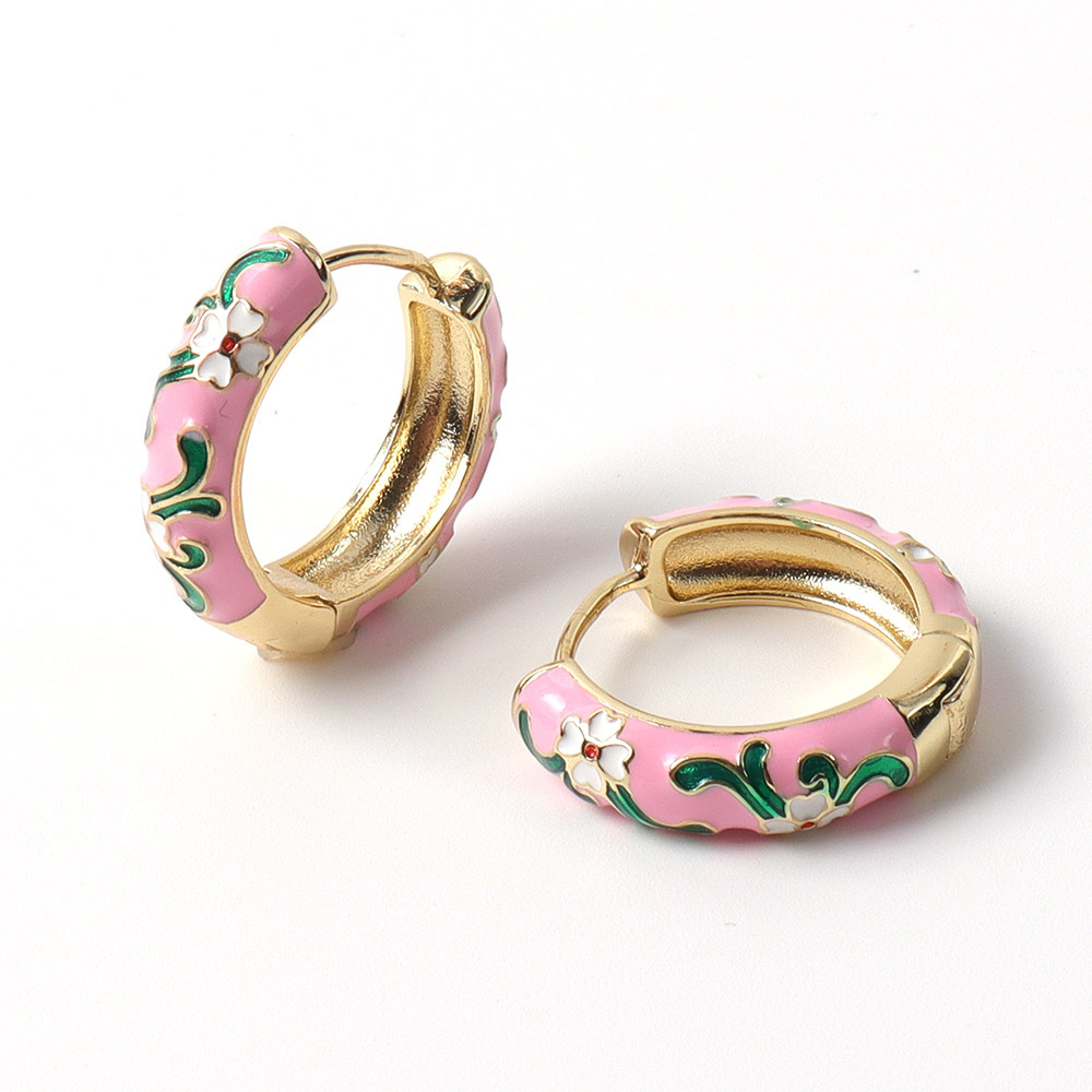 Enamel Earrings Burnt Blue Flower Women’s Earrings