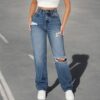 Women’s Fashion High Waist Ripped Straight Denim TrousersRead More