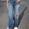 Women’s Fashion High Waist Ripped Straight Denim Trousers