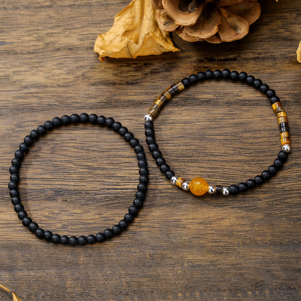 Fashion Black Agate Tiger Eye Beaded Bracelet Simple