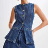 Fashion Denim Suit Summer Casual Sleeveless Button Vest Top And High Waist Shorts Set For Womens Clothing