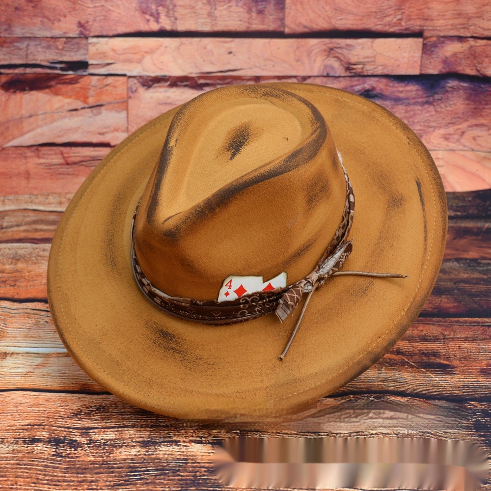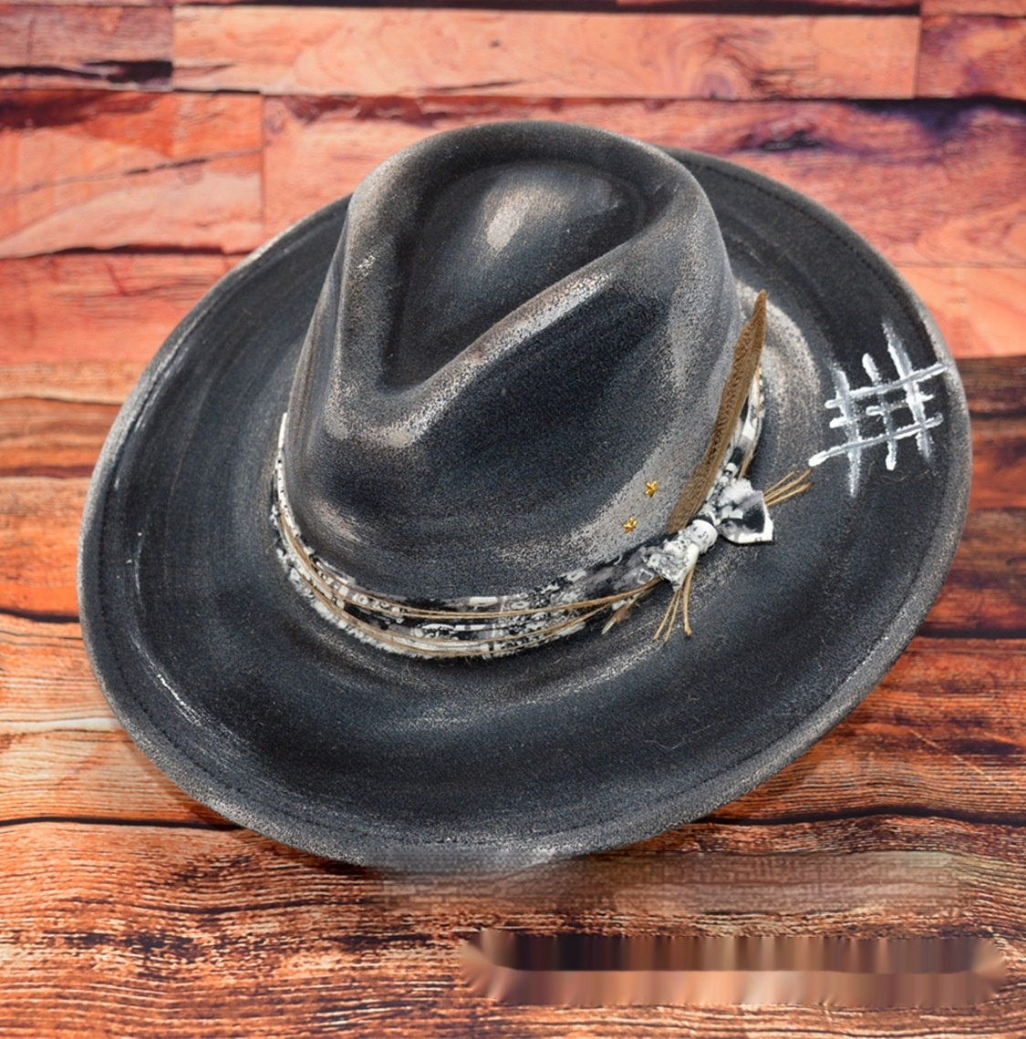 Retro Woolen Western Cowboy Hat Fashion Big Brim Top Hat
