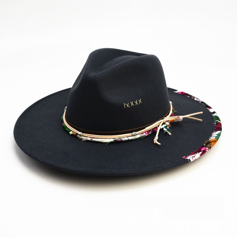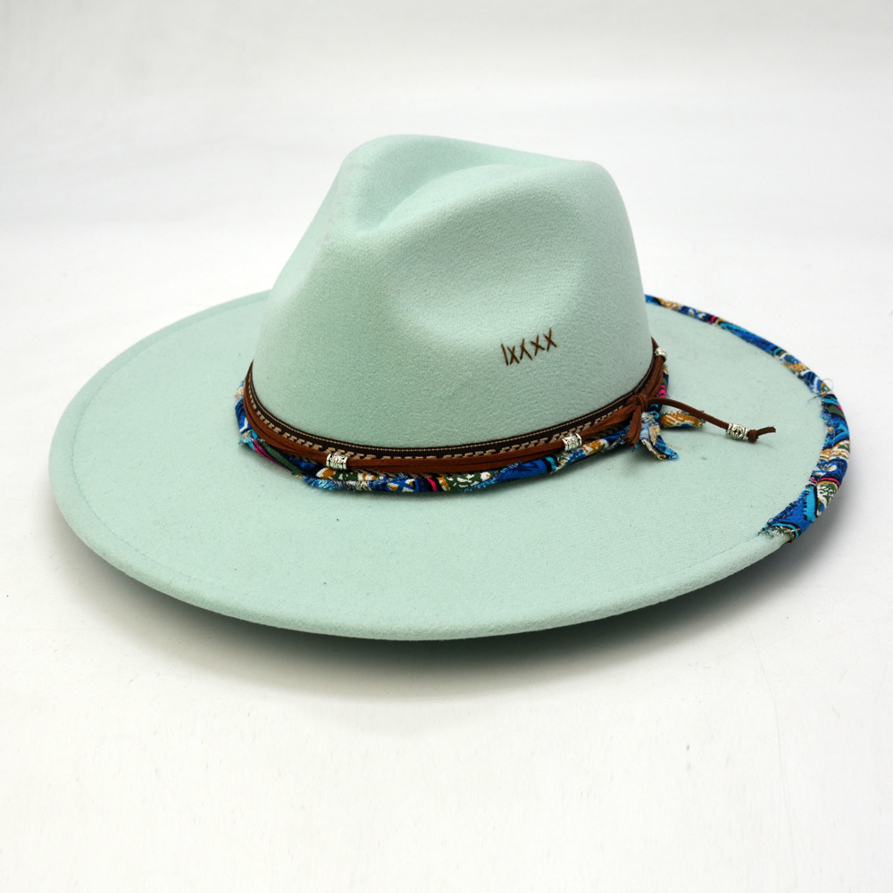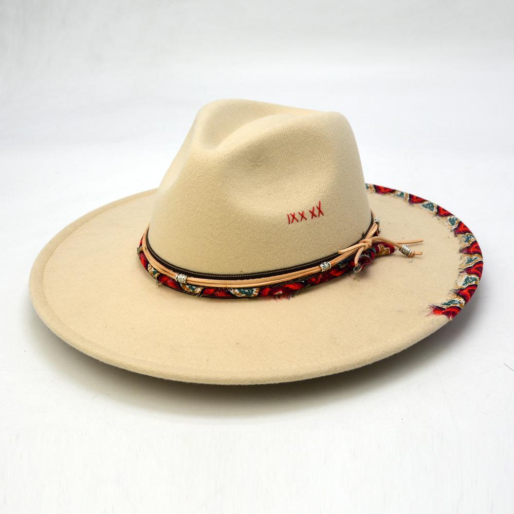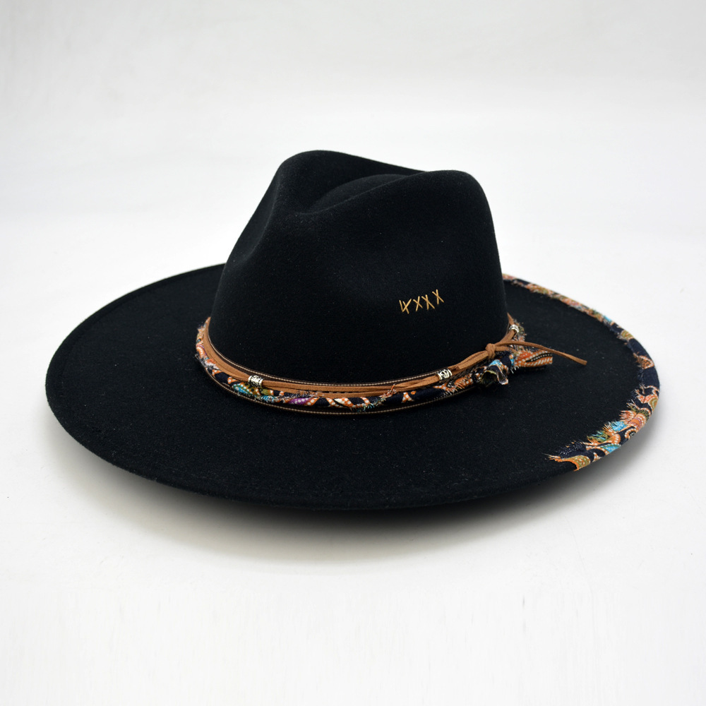 Wool Western Cowboy Hat Belt Top Hat Jazz Felt Cap