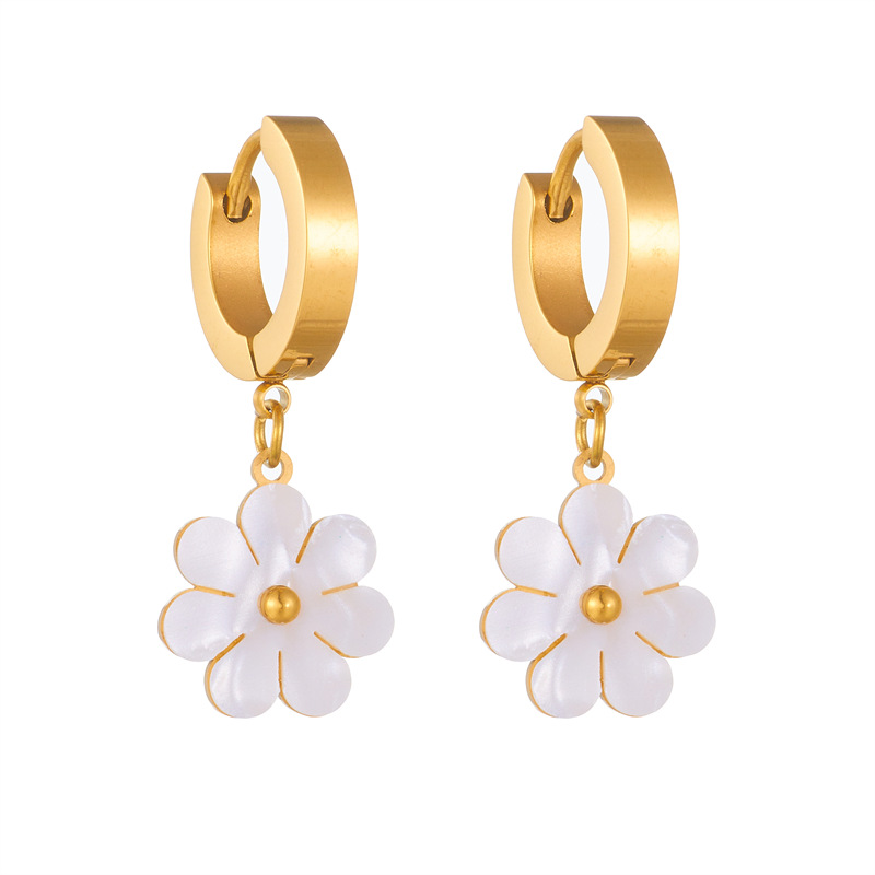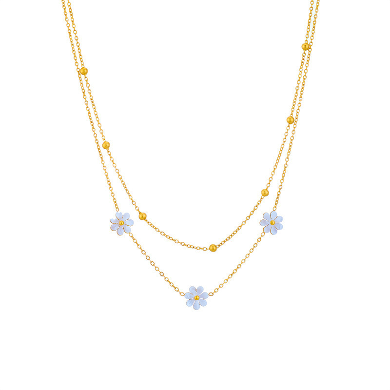 Color: gold Chrysanthemum White Shell stud earrings A803, gold Chrysanthemum White Shell double layer bracelet A801, gold Chrysanthemum White Shell double layer necklace A704, gold Chrysanthemum White Shell stud earrings double layer bracelet necklace