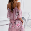 Flower Printed Ruffled Suspender Dress Summer Off-the-shoulder Strap Dresses Women