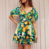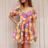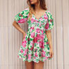 Flowers Print V-Neck Lantern-sleeve Dress Y2K Summer Vacation Beach Short Dresses Fashion Womens Clothing