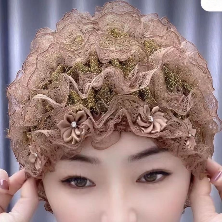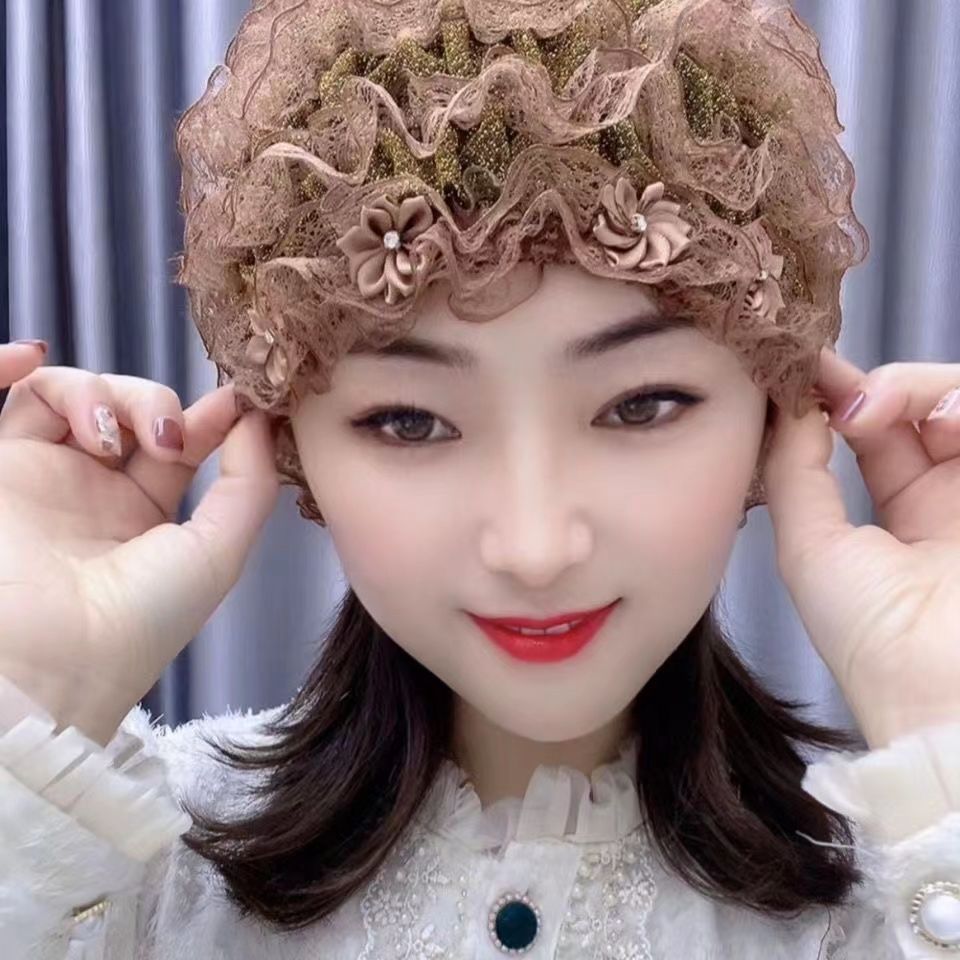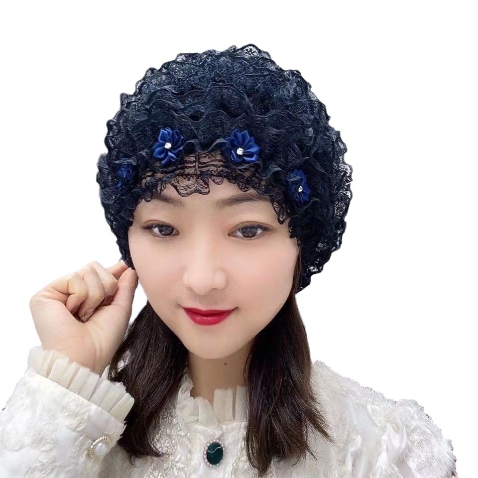 Four Seasons Little Flower Toque Cover Gray Hair Cap Lace
