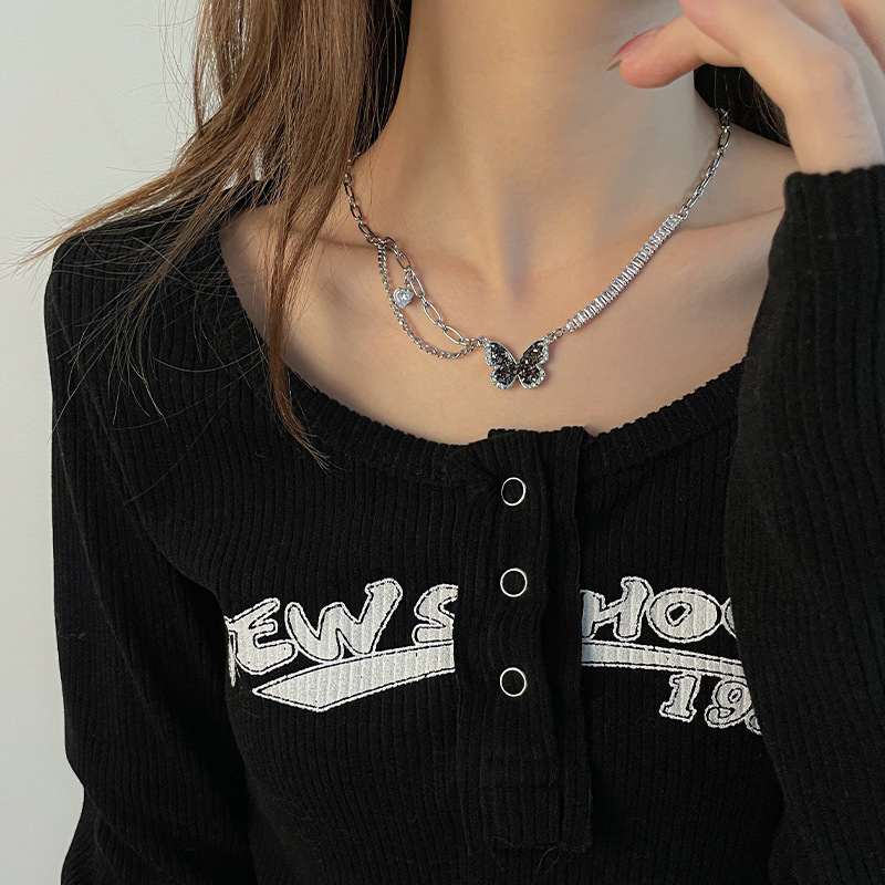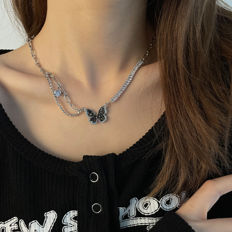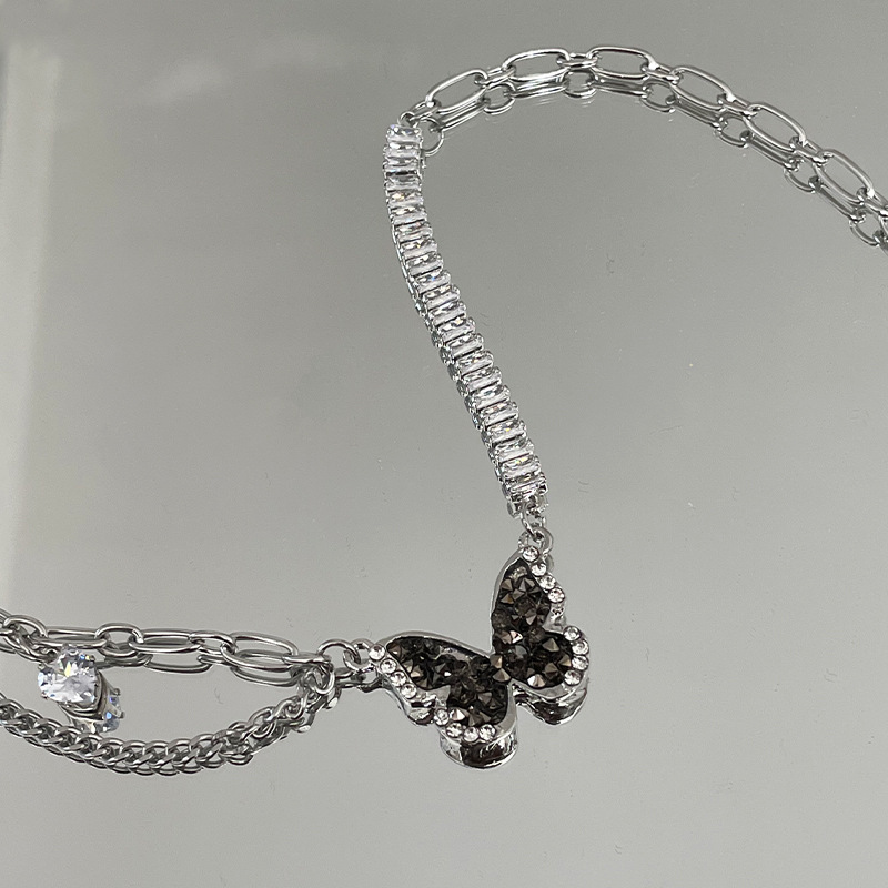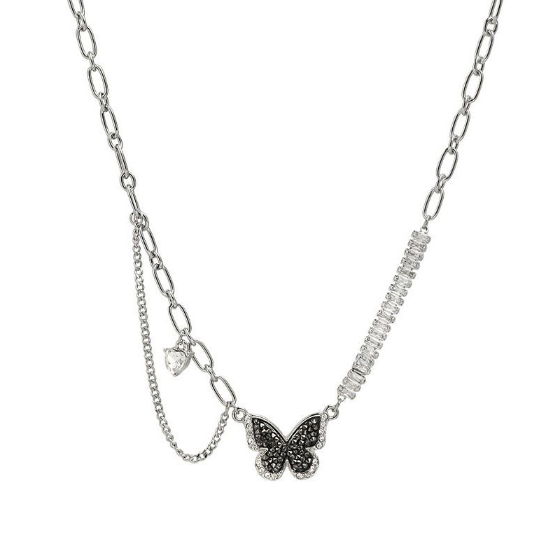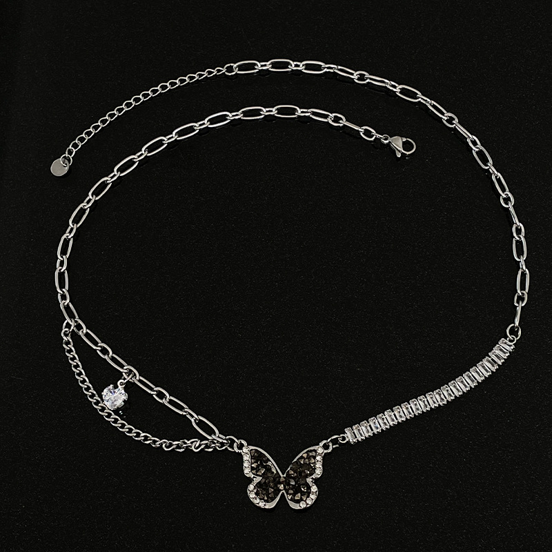 Color: Gun black butterfly single row diamond necklace