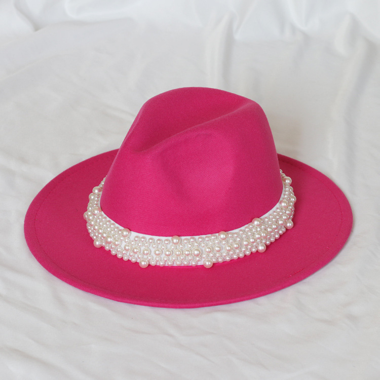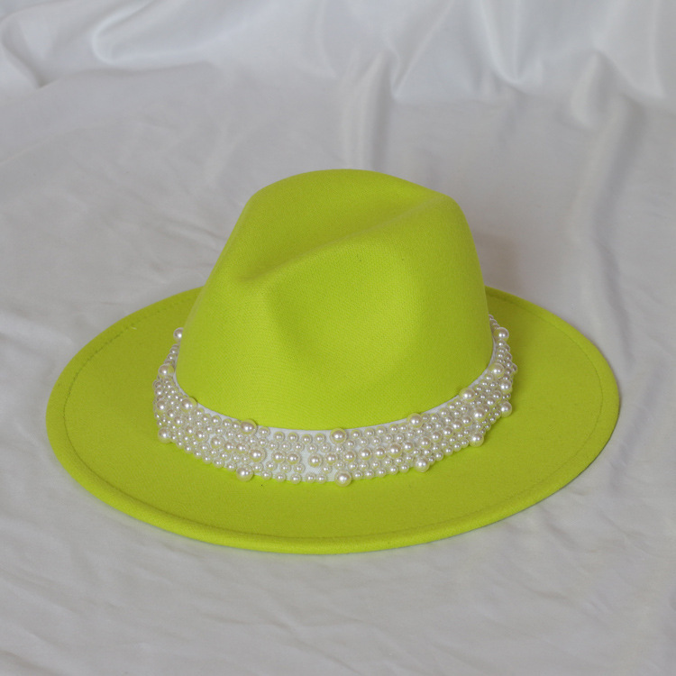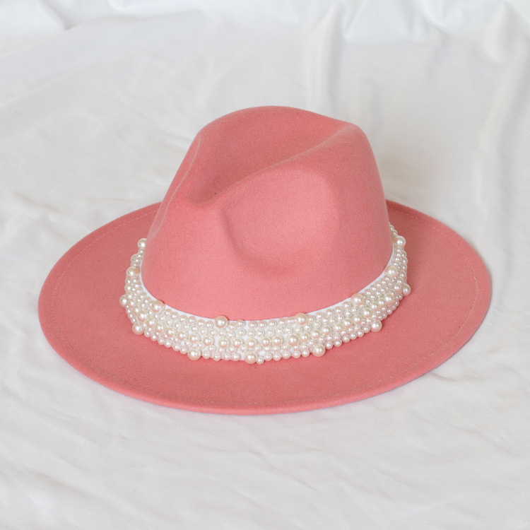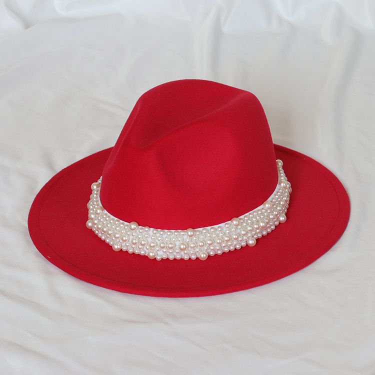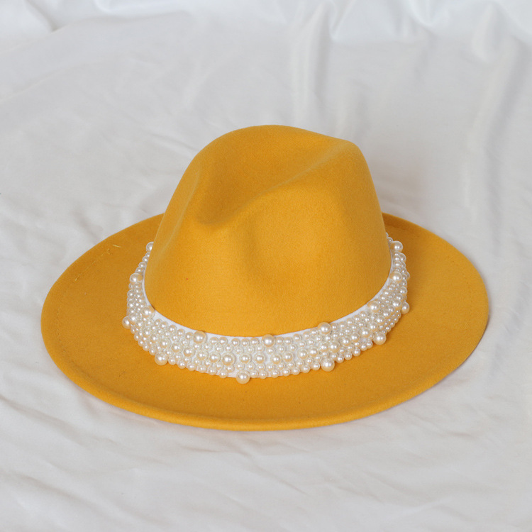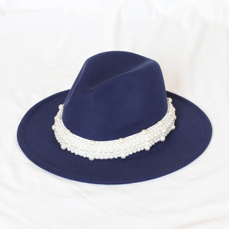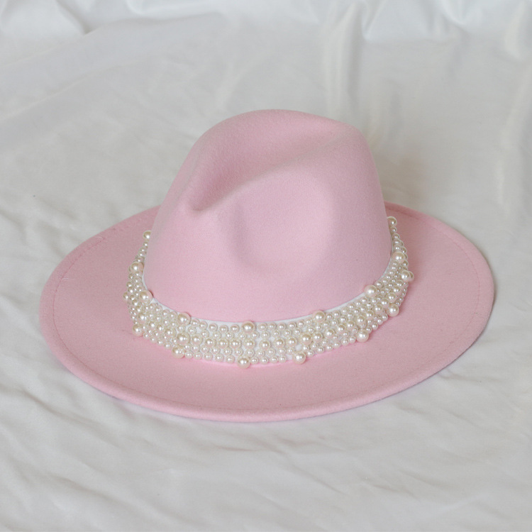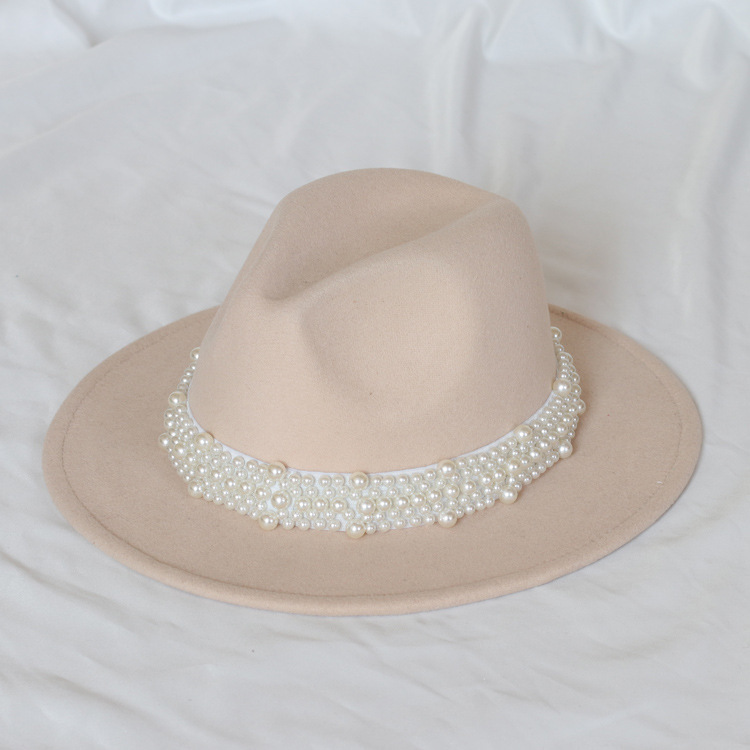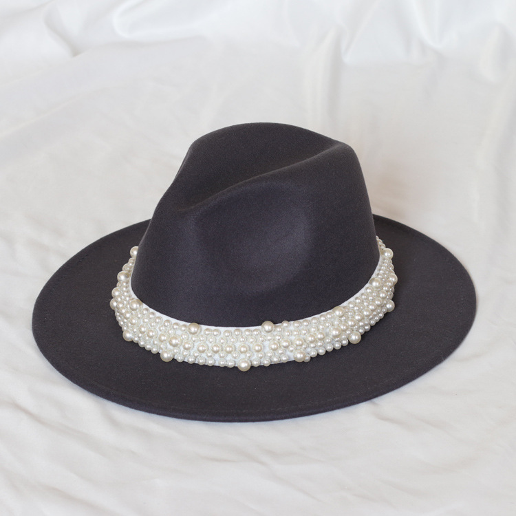 Handmade Pearl Top Hat Big Brim Fur Felt Hat