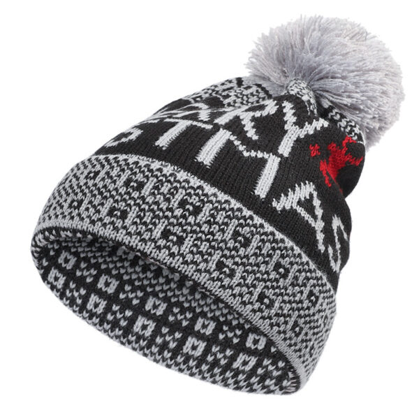 Hot Sale Christmas Elk Fur Ball Print Knitted Christmas Hat