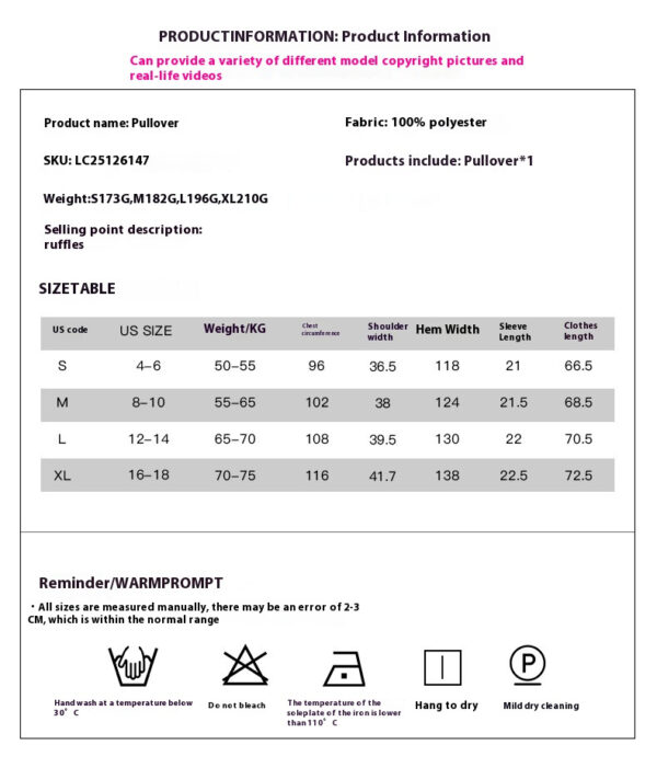 $ 43.87 – $ 44.25Price range: $ 43.87 through $ 44.25Select options This product has multiple variants. The options may be chosen on the product pageFabric: Polyester size(cm) shoulder bust waist Hips Length Sleeve S 39 100 74 94 82 70 M 40 104 78 98 84 71 L 41 108 82 102 86 72 1. Asian sizes are 1 to 2 sizes smaller than European and American people. Choose the larger size if your size between two sizes. Please allow 2-3cm differences due to …