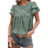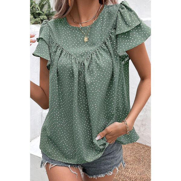 Layered Ruffled Short Sleeves T-shirt European And American Fashion Retro Dots