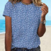 Loose Plus Size Sweet Floral 3d Printed Round Neck Short