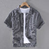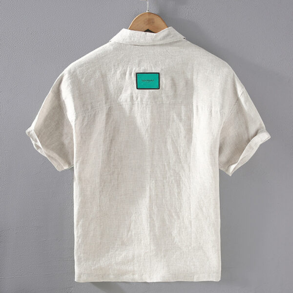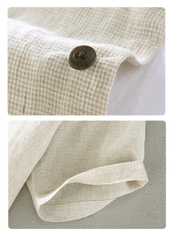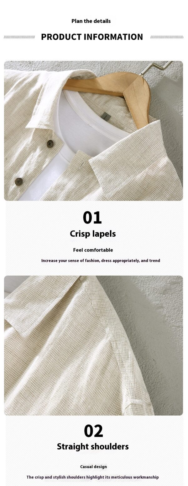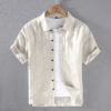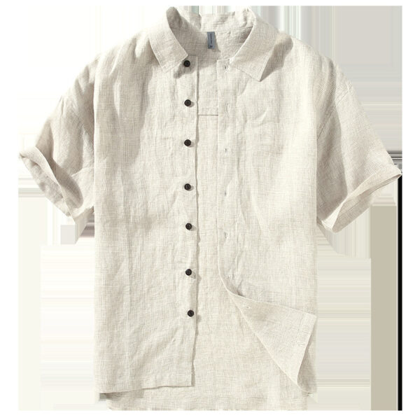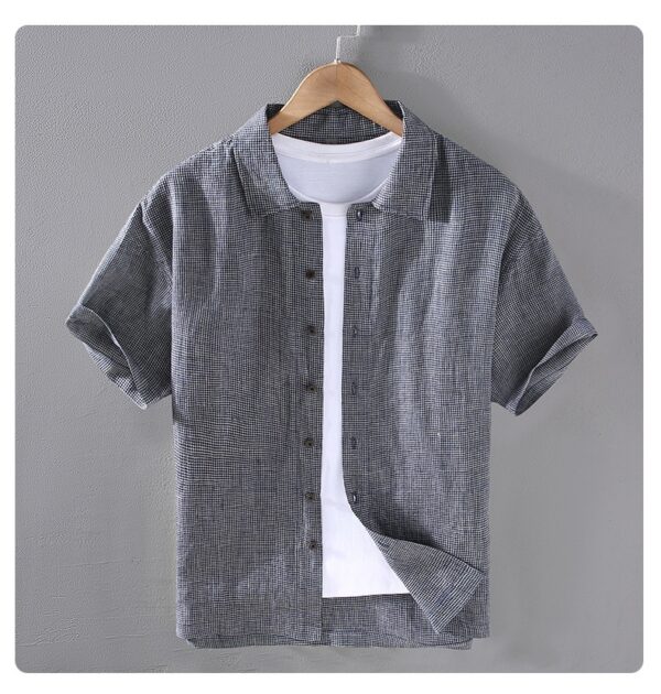 Men’s Woven Fine Plaid Linen Short Sleeved Shirt