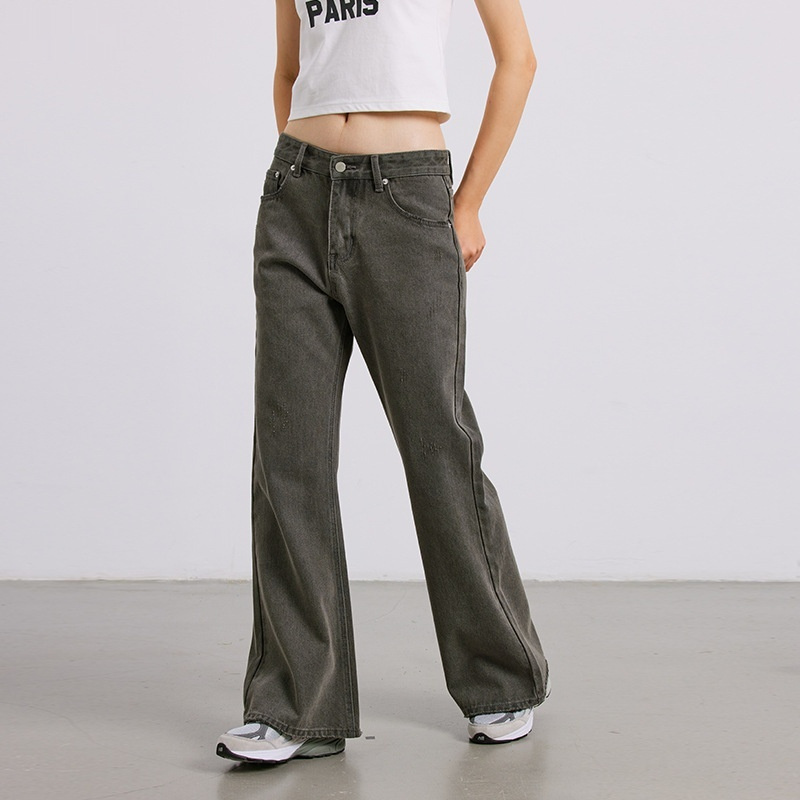 Mud Dyed Micro-pull Washed Distressed Cleanfit Straight Casual Pants Jeans