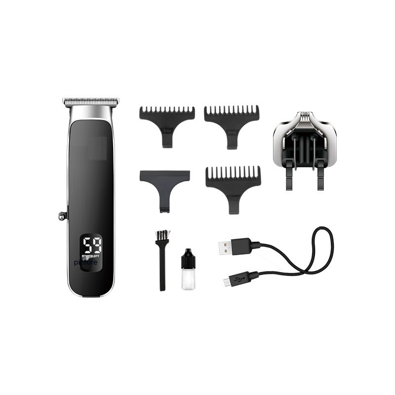 Product accessories: Blade 2 (T-shaped blade, carving cutter), limit comb * 3, cleaning brush, oil bottle, USB cable, instruction manual