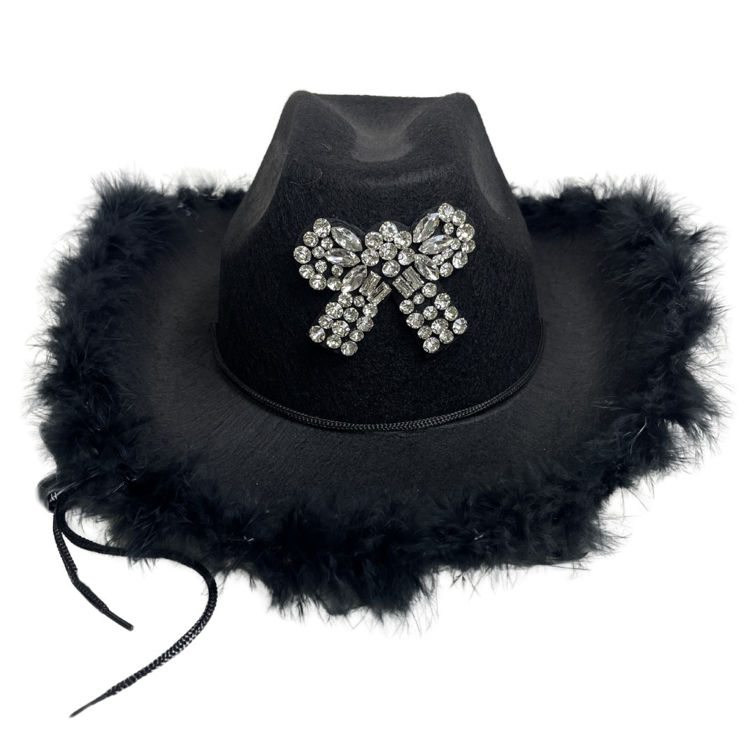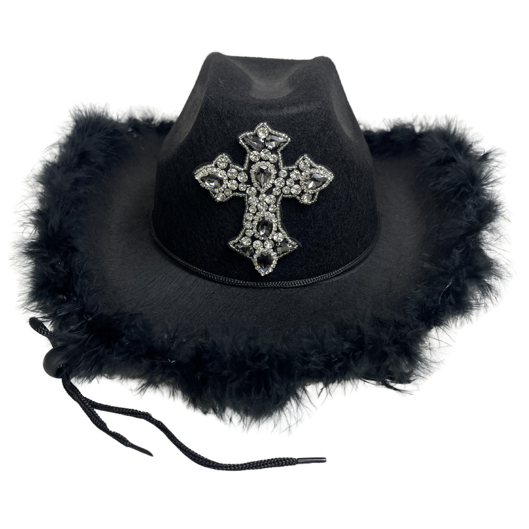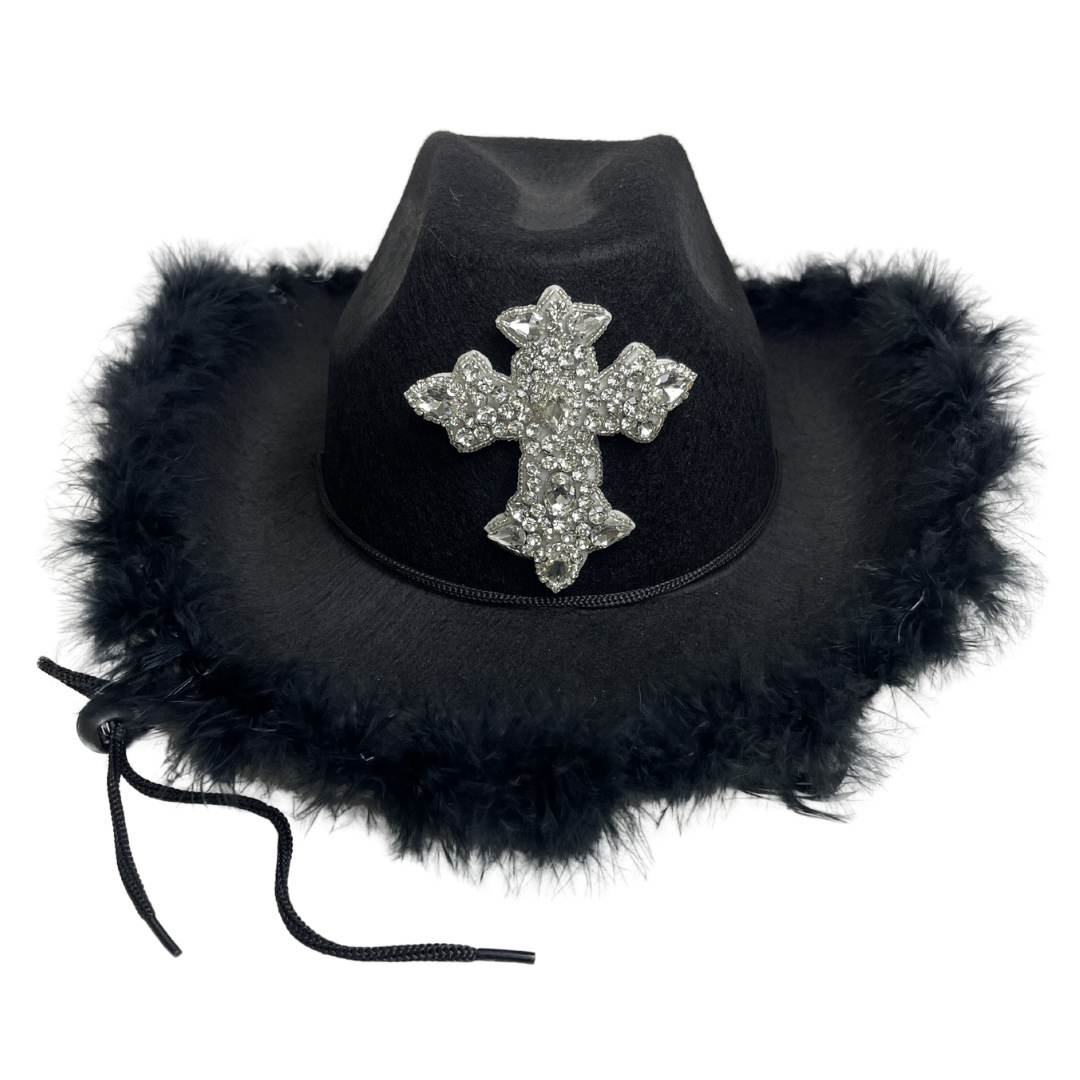 Rhinestone Burr Cowboy Hat Diamond Cross Black Performance Cap