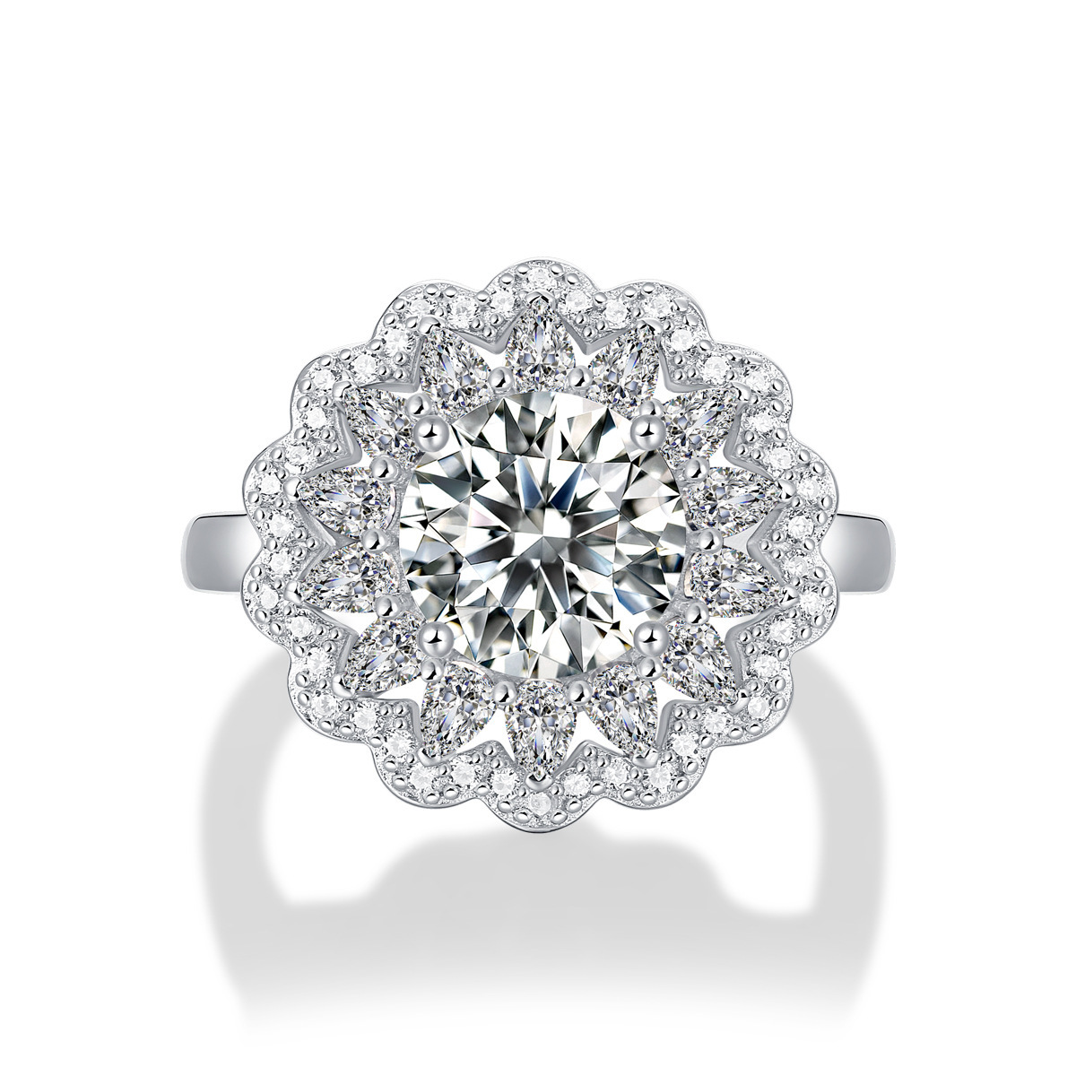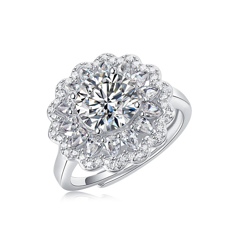 S925 Silver Moissanite Ring Flowers Female New Trendy Ring Adjustable Source Ring In Stock Generation