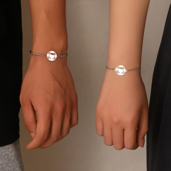 Simple Stainless Steel Round Heart Bracelet Women