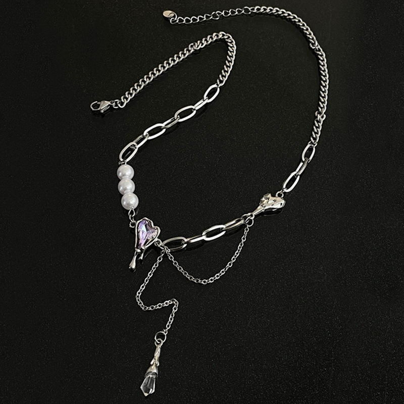 Special Interest Light Luxury Hip Hop Block Stitching Pearl Necklace