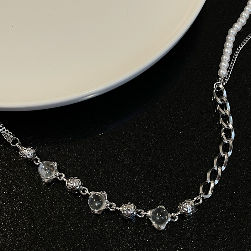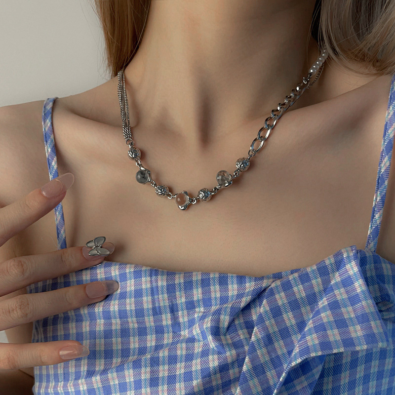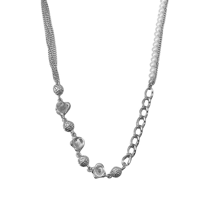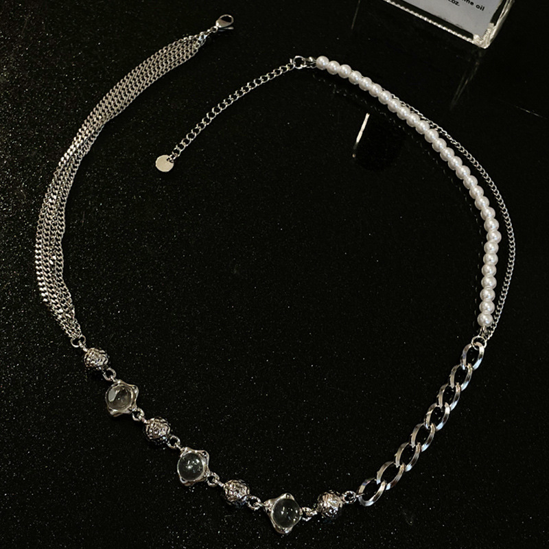 Sweet Cool Personality Round Beads Stitching Pearl Necklace