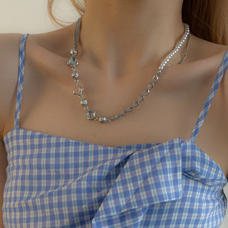 Sweet Cool Light Extravagant Love Heart Stitching Pearl Necklace