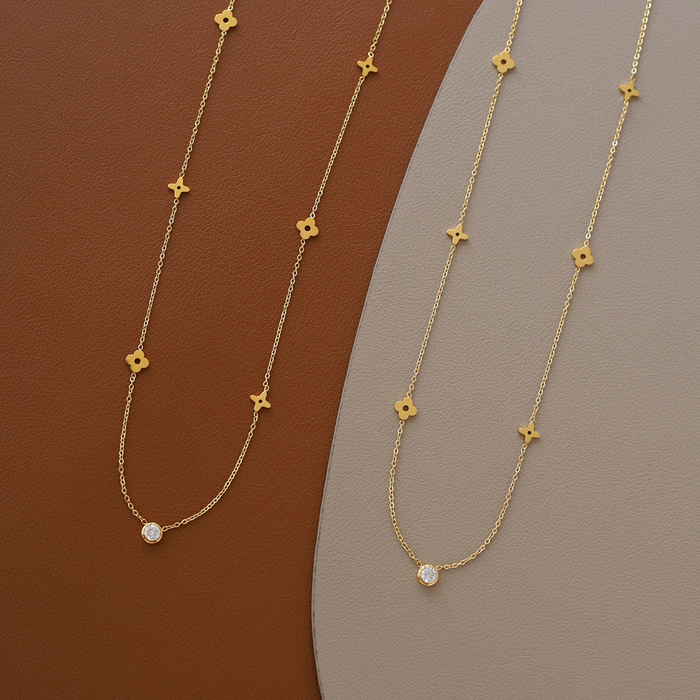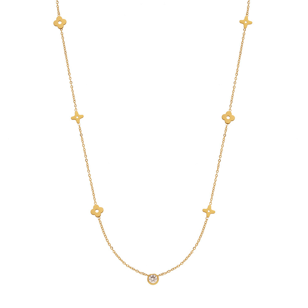 Titanium Steel 18K Gold Plating Flower Solitaire Necklace