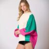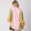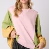 Women’s Contrast Color Long Sleeve Round Neck Top Casual Loose Sweatshirt