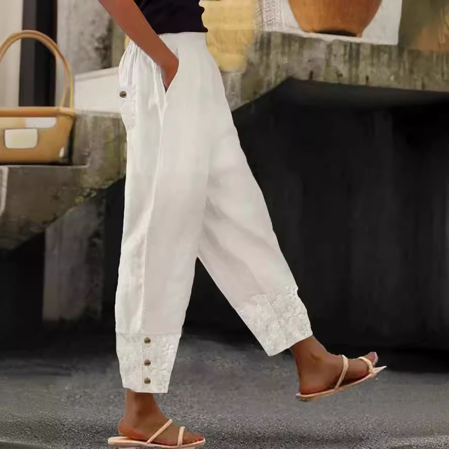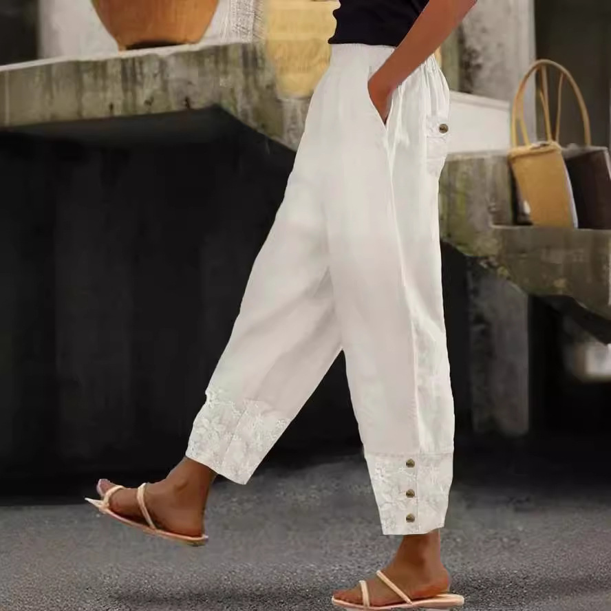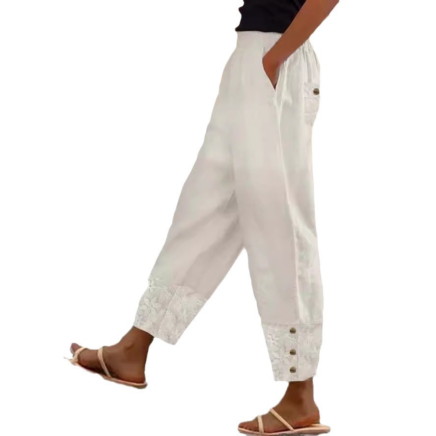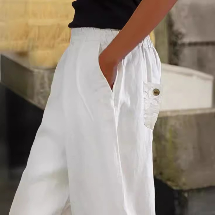 Women’s Cropped Pants Casual Loose All-matching Elastic Waistband Trousers