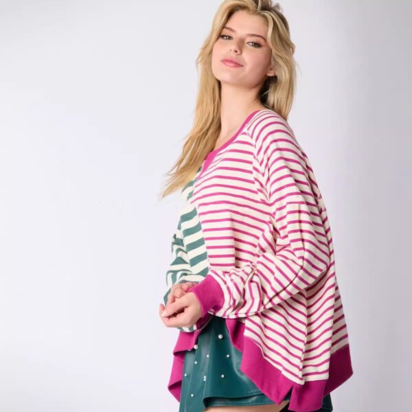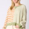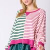 Women’s Round Neck Multicolor Striped Long-sleeved Top Sweater