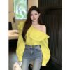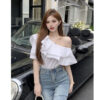 Women’s Ruffled Off-the-shoulder Long Sleeve Design Elegant Socialite Shirt