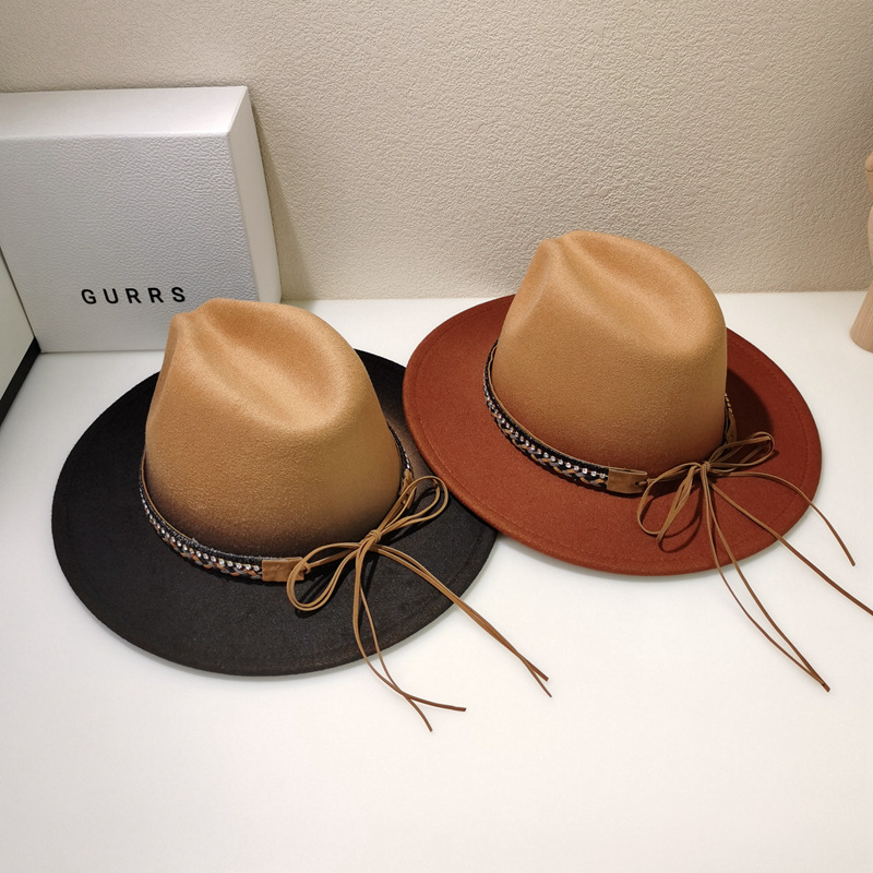 Retro Woolen Western Cowboy Hat Fashion Big Brim Top Hat